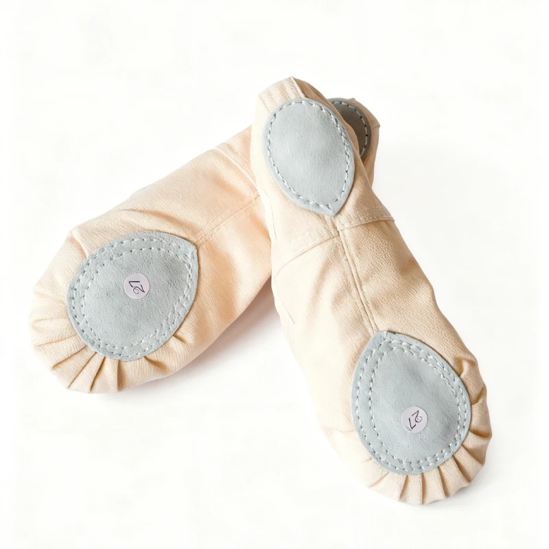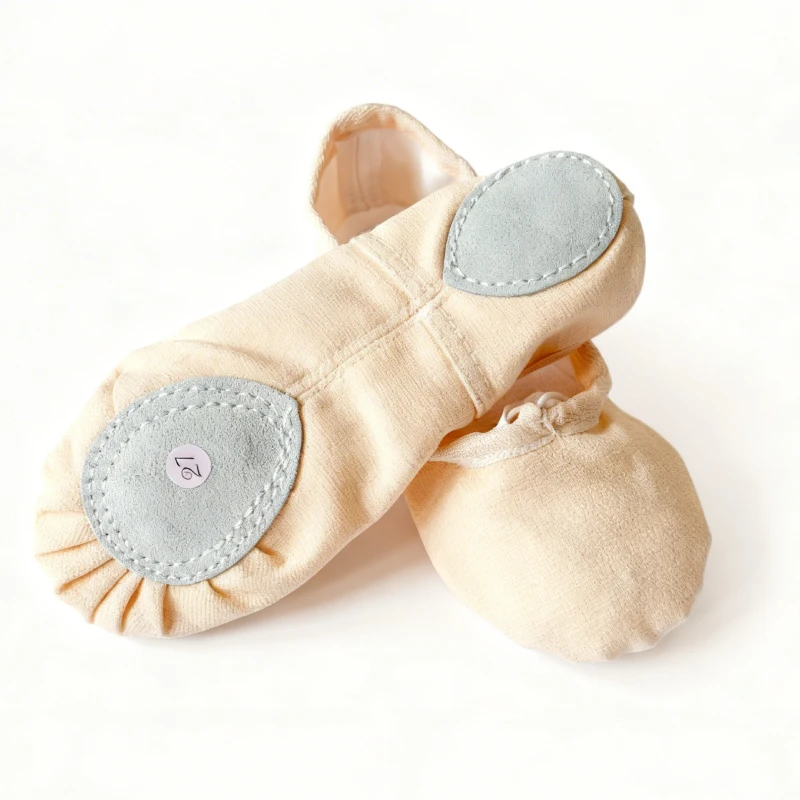 Svetlo krem baletanke izrađene od čvrstog kanvas platna sa podstavom i ukrštenim lastišem.